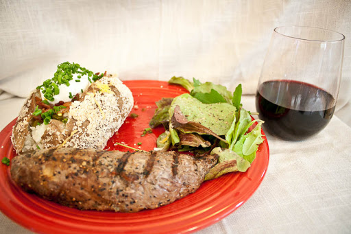 I am currently lying on my couch completely full and satisfied. I have finally learned how to grill a steak! Tonight I grilled steak and made salt-encrusted baked potatoes (fully loaded with homegrown chives) and I even was able to serve a small salad with greens from our very own garden! Here’s what I made and how I made it: