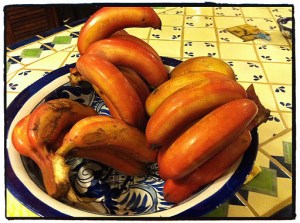 My parents' banana tree produced about two dozen red bananas and they've been hanging in the hall for a week ripening. They are finally ready to be eaten so we have to get to work!