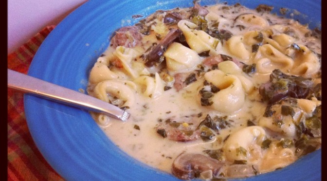 Add the spinach and sausage and continue cooking till tortellini is al dente. Add the evaporated milk and cook till soup is hot again. Serve with freshly grated Parmesan and crusty bread.
