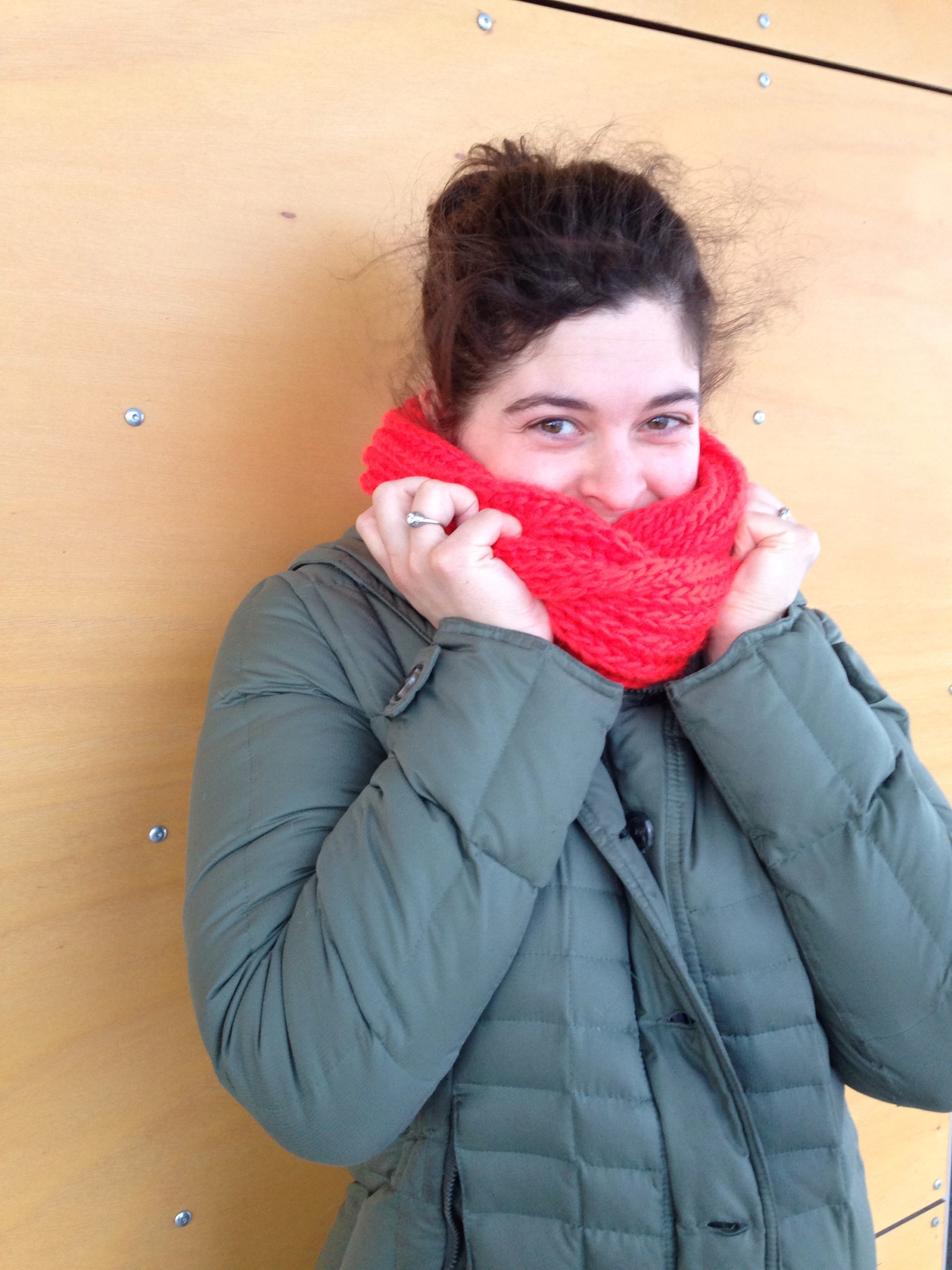 I took it one step further with this fluffy, scrumptious stitch and decided to make an oversized cowl using larger needles and a wider width. Not only is it super cozy, but you can stretch part of it over your head for a makeshift hood. You can wear it looped around your neck twice or have it hang loosely. It’s a versatile piece that happens to be trendy.