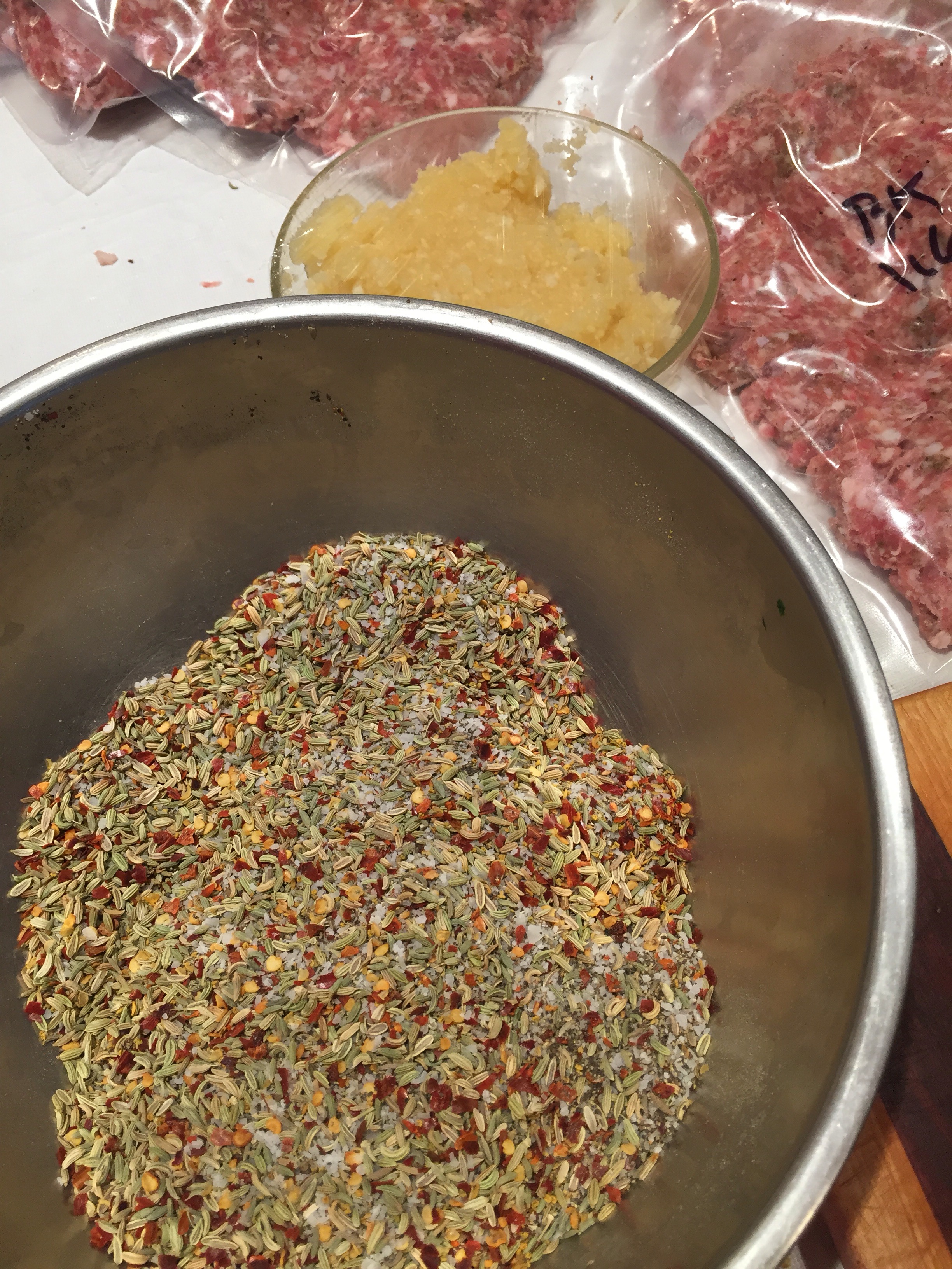 Today we are making Italian sausage. For other recipes, I recommend my dad’s site. Also, I recommend my dad’s handy-dandy Sausage ingredient calculator.