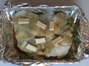Line a casserole dish with foil. Preheat the oven to 400 degrees F.