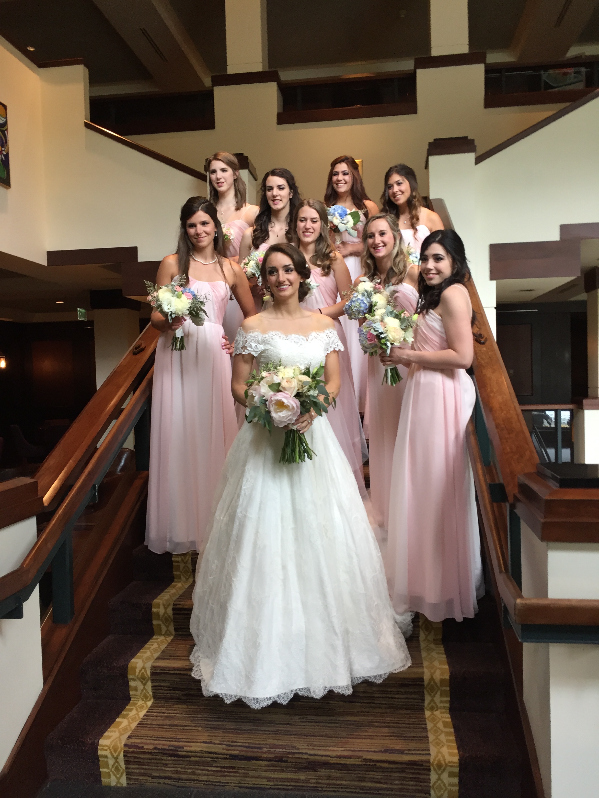 Bridal bouquet with peonies, garden roses, lisianthus, spray roses, limonium, salal and seeded eucalyptus | a romantic flower arrangement with a soft palate, designed by Natasha Price of Alaskaknitnat.com