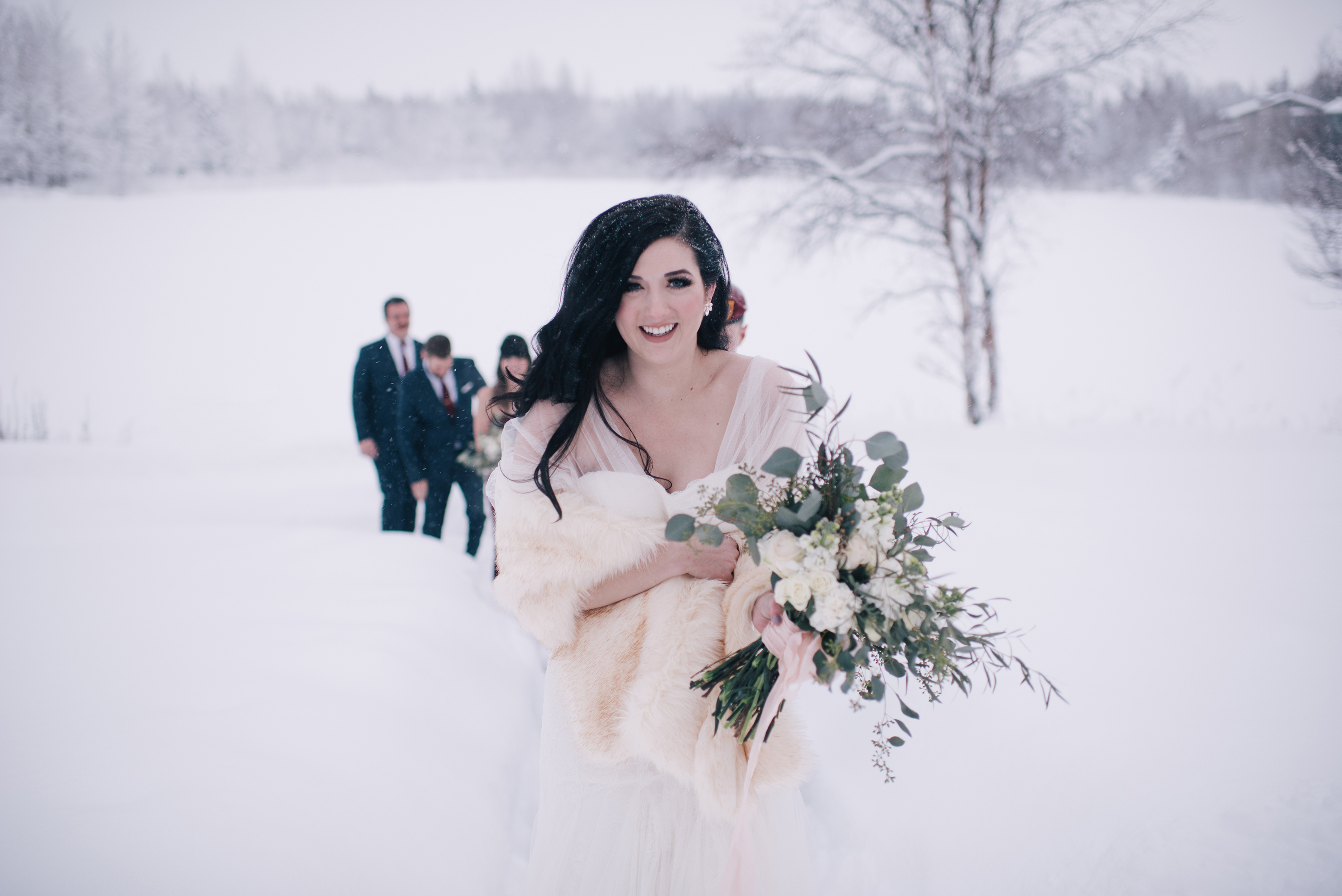 The perfect winter wedding bouquet | roses, stock, waxflower and carnation mixed with eucalyptus. Flowers by Natasha Price and photo by Erica Rose Photography