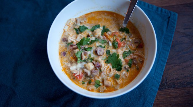 Sometimes I just want the hominy without the posole, so today I made a corn chowder-like soup using hominy instead of corn. I recently got to visit a Trader Joe’s in Pennsylvania where I picked up a jar of elote corn seasoning, which seemed like a great way to flavor a Mexican-style corn chowder. This chowder was fantastic and definitely something I don’t want to forget, which is why I’m putting it down here!