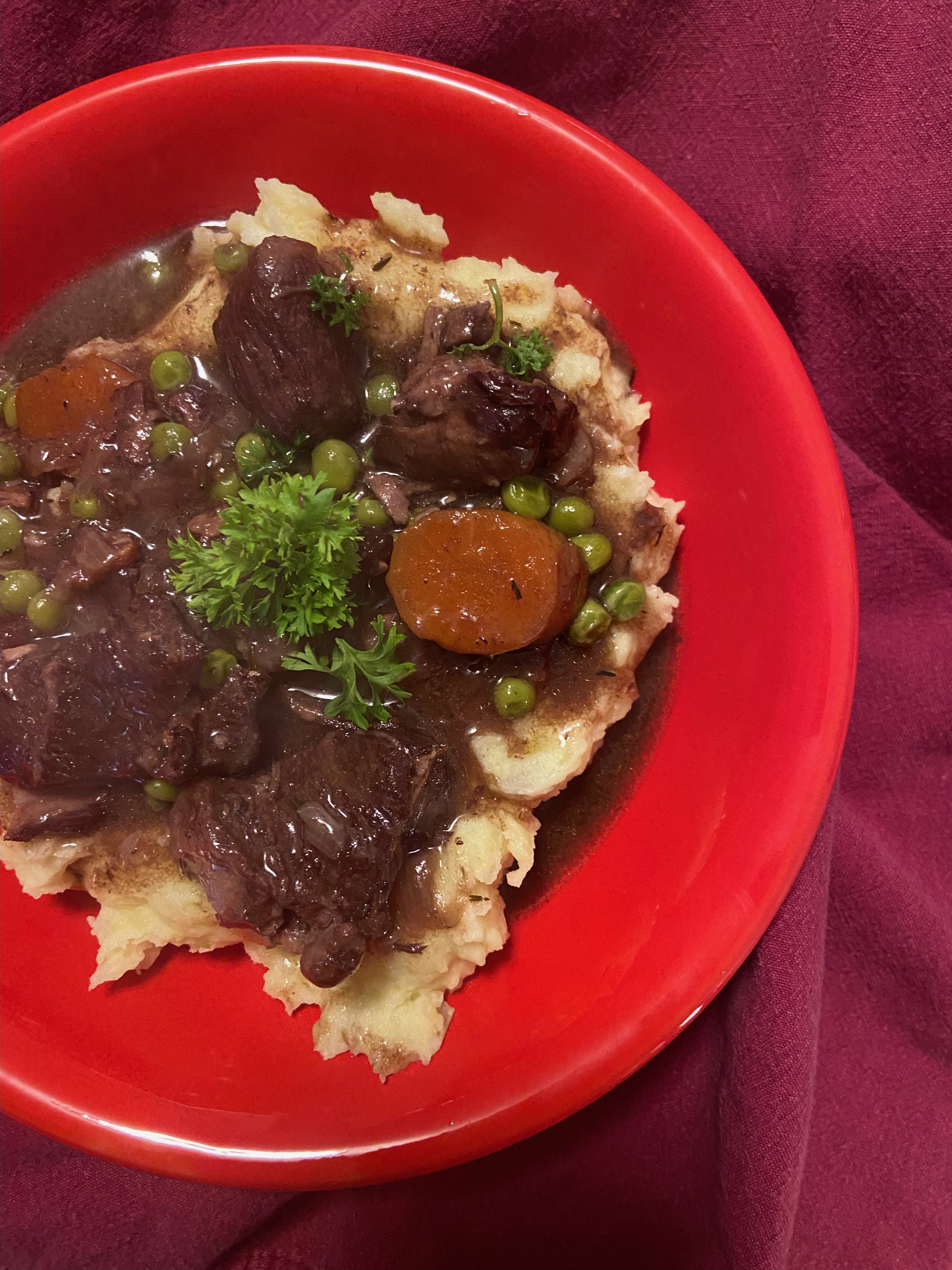 So with my seasoned chef’s hat securely on my head, I set to reimagine this recipe and make it more palatable but with the same flavors my husband yearned for. I turned to the stew queen herself, Julia Child, whose boeuf bourguignon recipe is pretty much considered the holiest of stew recipes.