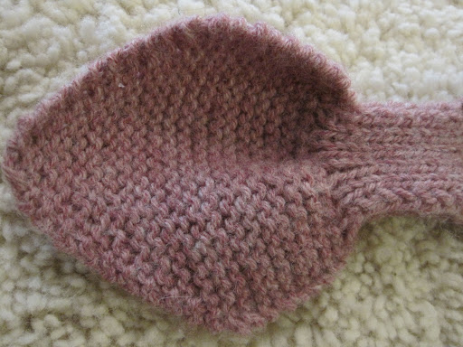 Transfer gusset stitches to three doublepoints. Pick up 2 stitches where the crotch of the thumb will be. You can pick up more than two if it will make fewer holes, just be sure to knit them together on the first round.