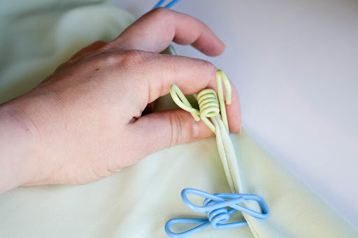 Cut yarn leaving a long tail. With darning needle, weave in the tail from the beginning and end.