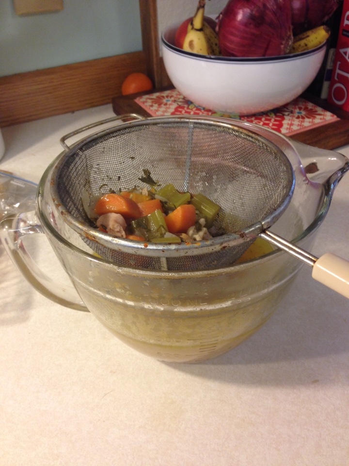 I started by making a really rich chicken stock. After simmering it for about six hours I strained it and then decided to make chicken noodle soup with homemade noodles.