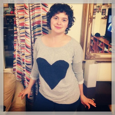 I love the concept of refashioning clothes; i.e., taking an article of clothing and turning into a different article of clothing. Refashionista is pretty much my sewing/thrifting idol and she’s incredibly cute.