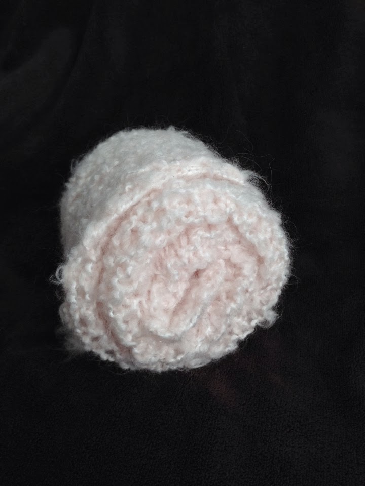 I augmented the Ravelry pattern by using lighter weight yarn, one variegated skein instead of two contrasting colors, and smaller needles.