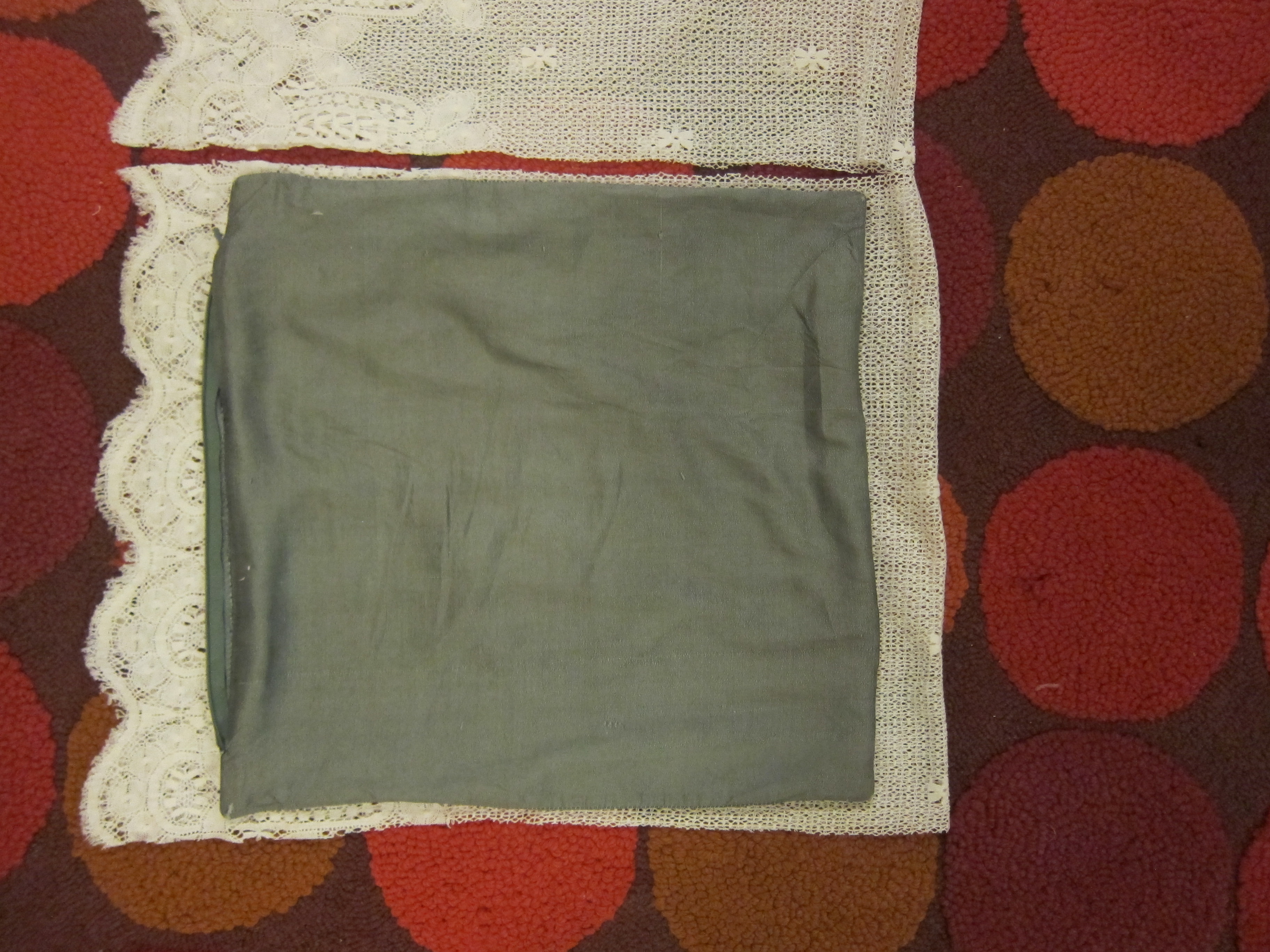 Step 4: Fold down the top edge by 7 inches and cut across for the waistband. My waistband measured 32 inches long and 14 inches tall (you’ll be folding it in half later). Set this aside.