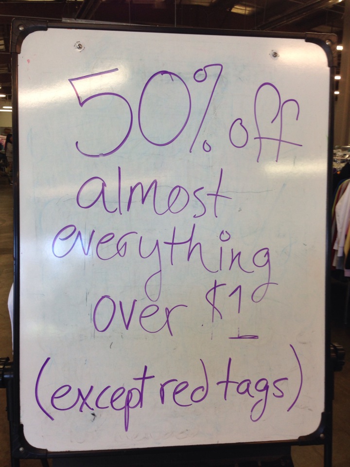 It was our lucky day because *almost* everything was 50 percent off, so we walked out with an armload for under $20.